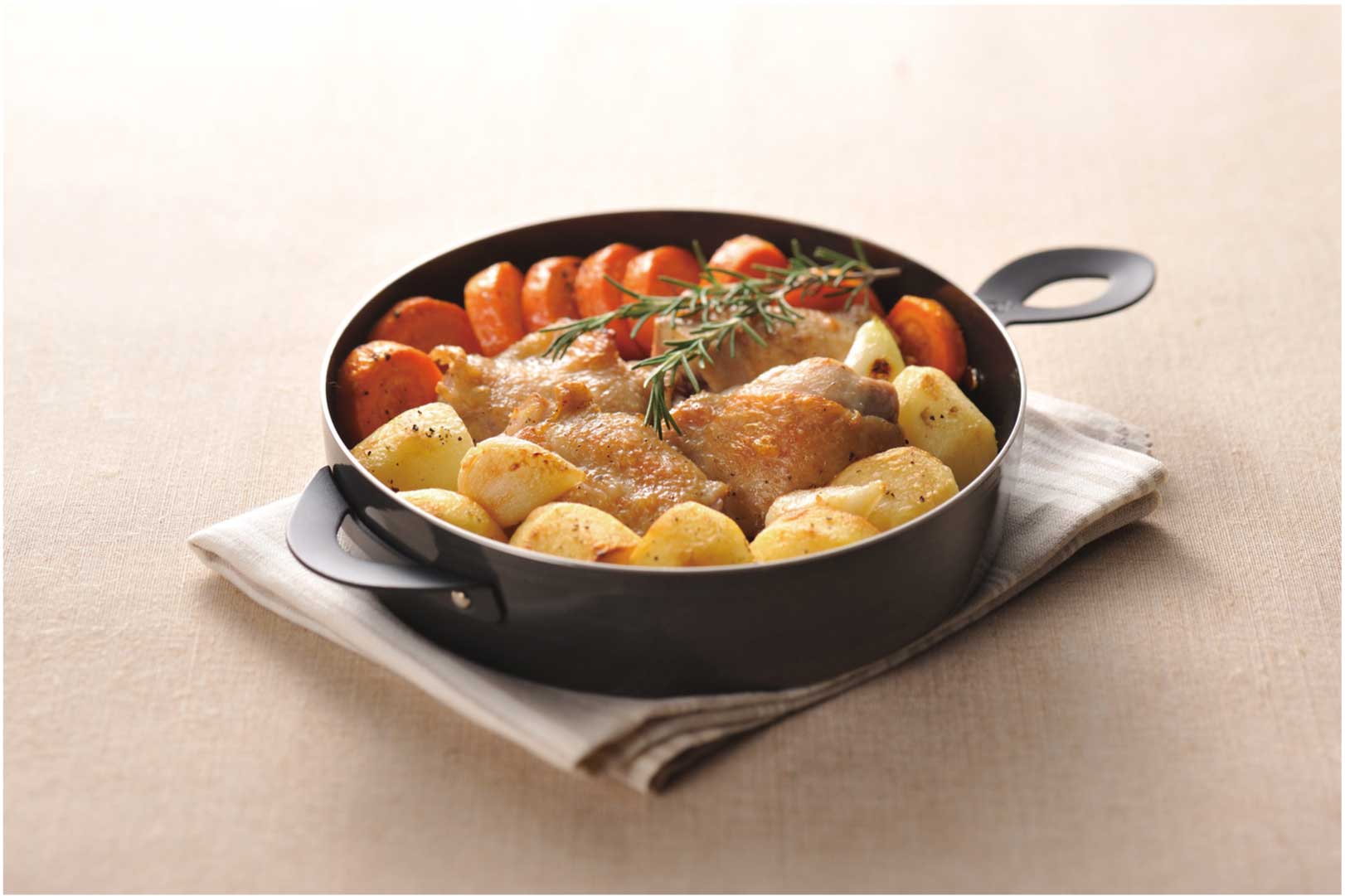 ※鶏肉は実の厚い部分に切込みを入れ、皮全体にフォークで穴をあけ一口大に切る。塩・こしょうをして20~30分常温に置く。