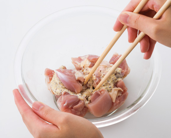 鶏もも肉は一口大にそぎ切りにし、塩・こしょうをふり、★と絡めます。