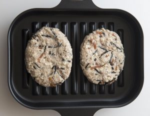 小判型に形を整え、ラ・クックに並べ、フタをして焼く。