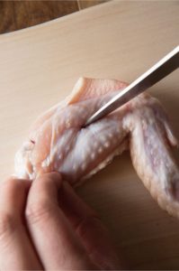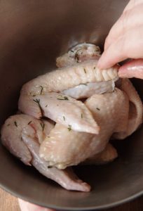 〈A〉を混ぜ合わせたボウルに、手羽先を入れ、よくもみ込む。