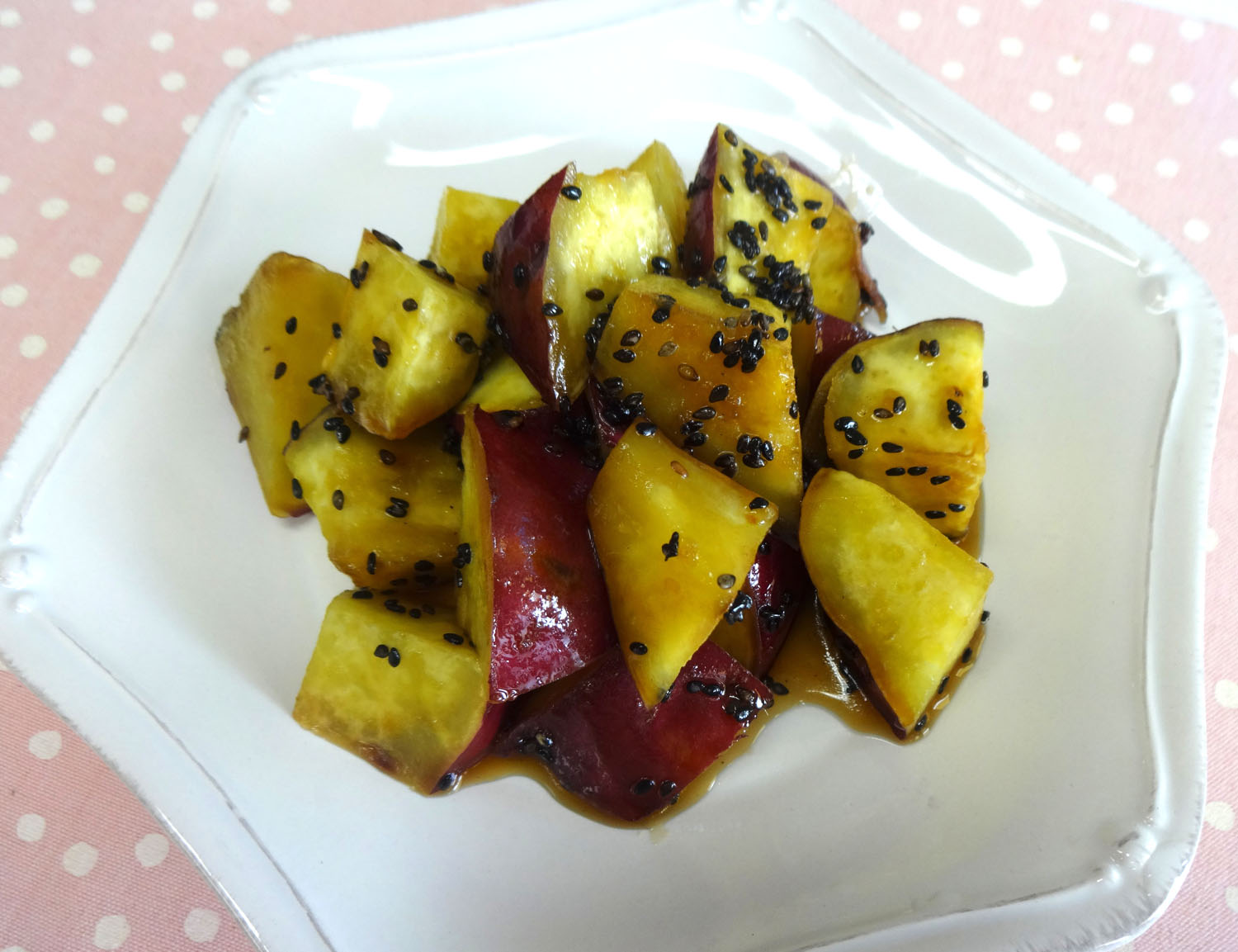 さつまいもは小さめの一口大の乱切りに切り、水にさらし、水気を切ります。