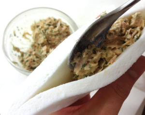 混ぜ合わせたAを①のはんぺんの間に入れます。
