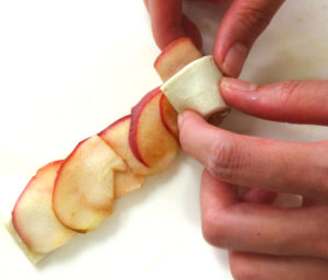 りんごは薄くスライスし、冷凍パイは1.5㎝幅に切ります。
