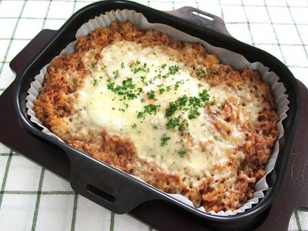 ご飯と②を混ぜ合わせ、クッキングシートを敷いたラ•クックに入れます。