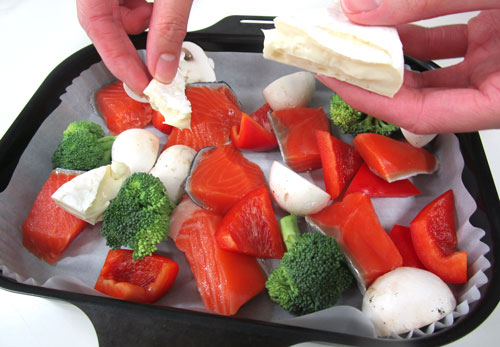 クッキングシートを敷いたラ・クックに①とカマンベールをちぎりながら入れ、