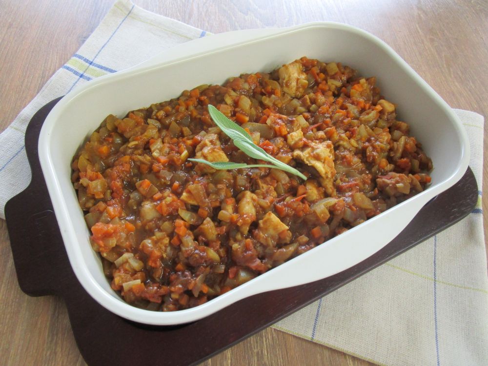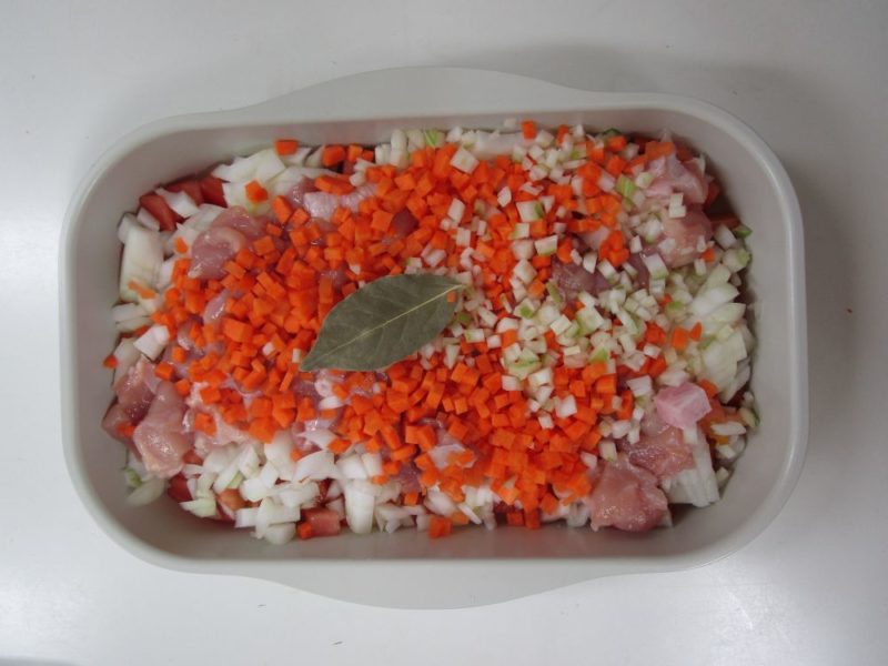 鶏肉は小さめの一口大に切り、玉ねぎとにんじんは粗みじんに切り、トマトは角切り、セロリは薄切りに切ります。