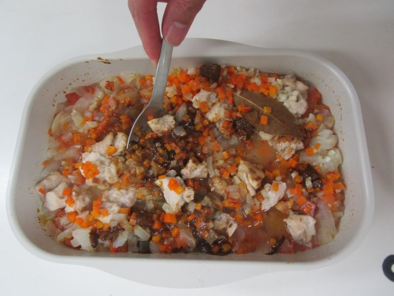 加熱後、余熱で15分グリルの中に入れておき、余熱が終わったらルウを加えて混ぜ合わせます。