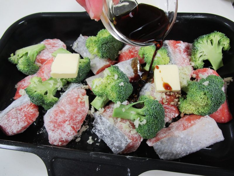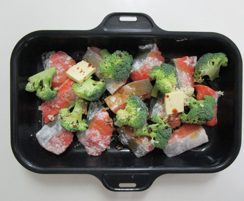 ラクックグランでつくる彩り鮮やか鮭とブロッコリーのソテーです。