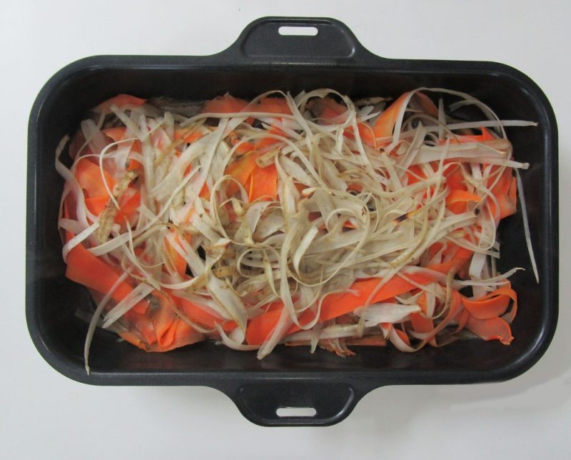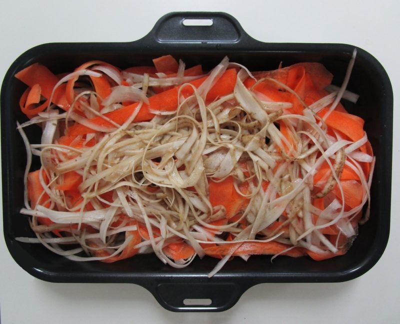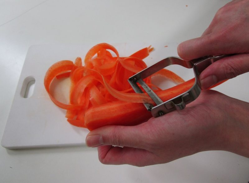 ごぼうとにんじんはピーラーで薄くスライスします。