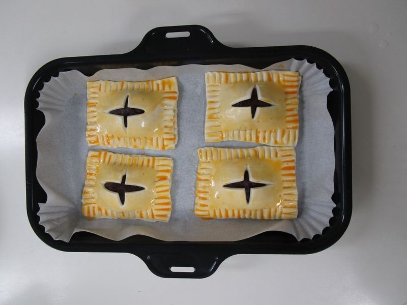 ラ・クックグランに③を並べて卵黄を塗り加熱します。