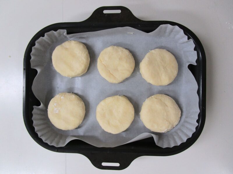 麺棒で2.5㎝の厚さに伸ばし、型で抜きます。