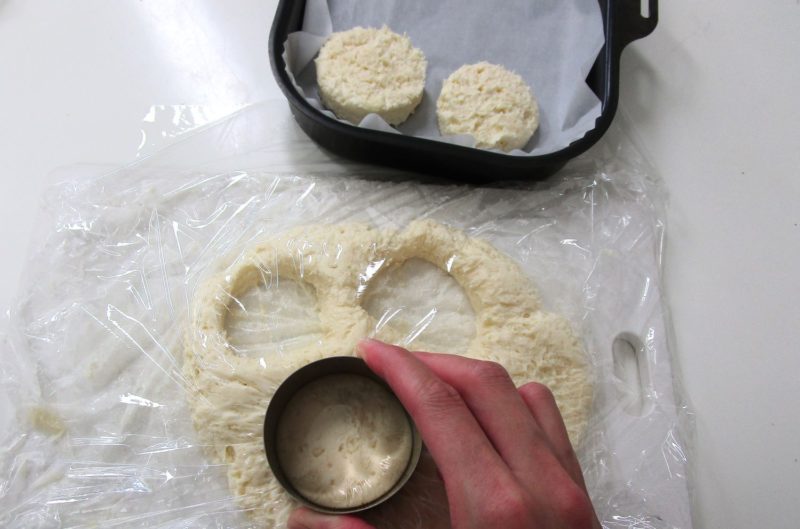 麺棒で2.5㎝の厚さに伸ばし、型で抜きます。