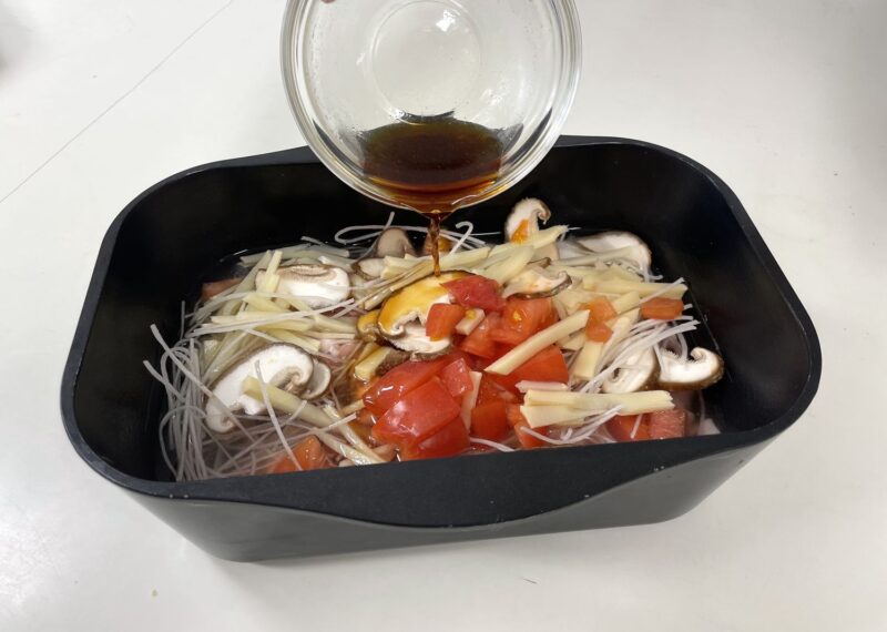 ラ・クックグランポットに①と②を入れて、Aを加えて加熱します。