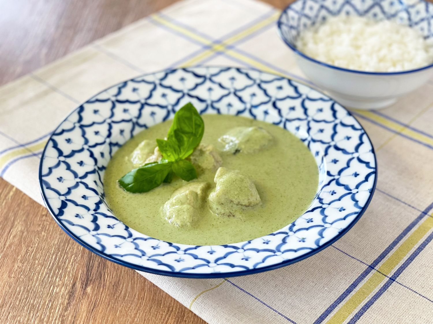 ラ・クックグランポッドに②と③を入れ、スイートバジルを加えて加熱します。