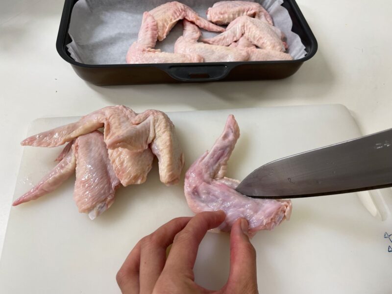 手羽先は骨に沿って切れ目を入れます。
