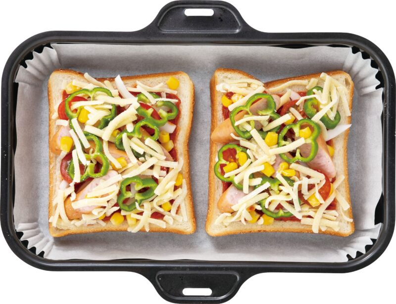 ビルトインコンロ「クレア」のTVCMで放映中のピザトーストレシピです。