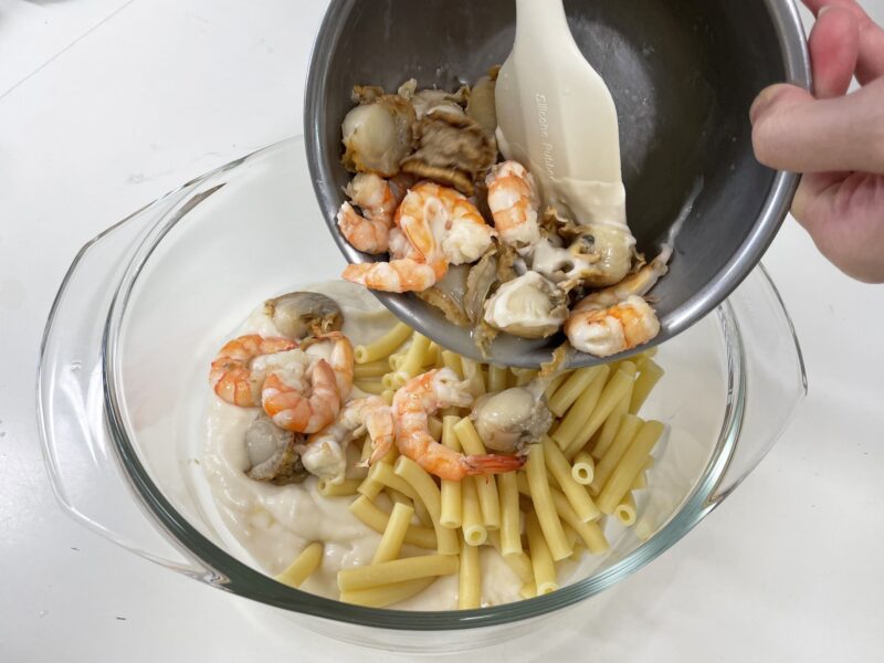 ホタテとエビのマカロニグラタン