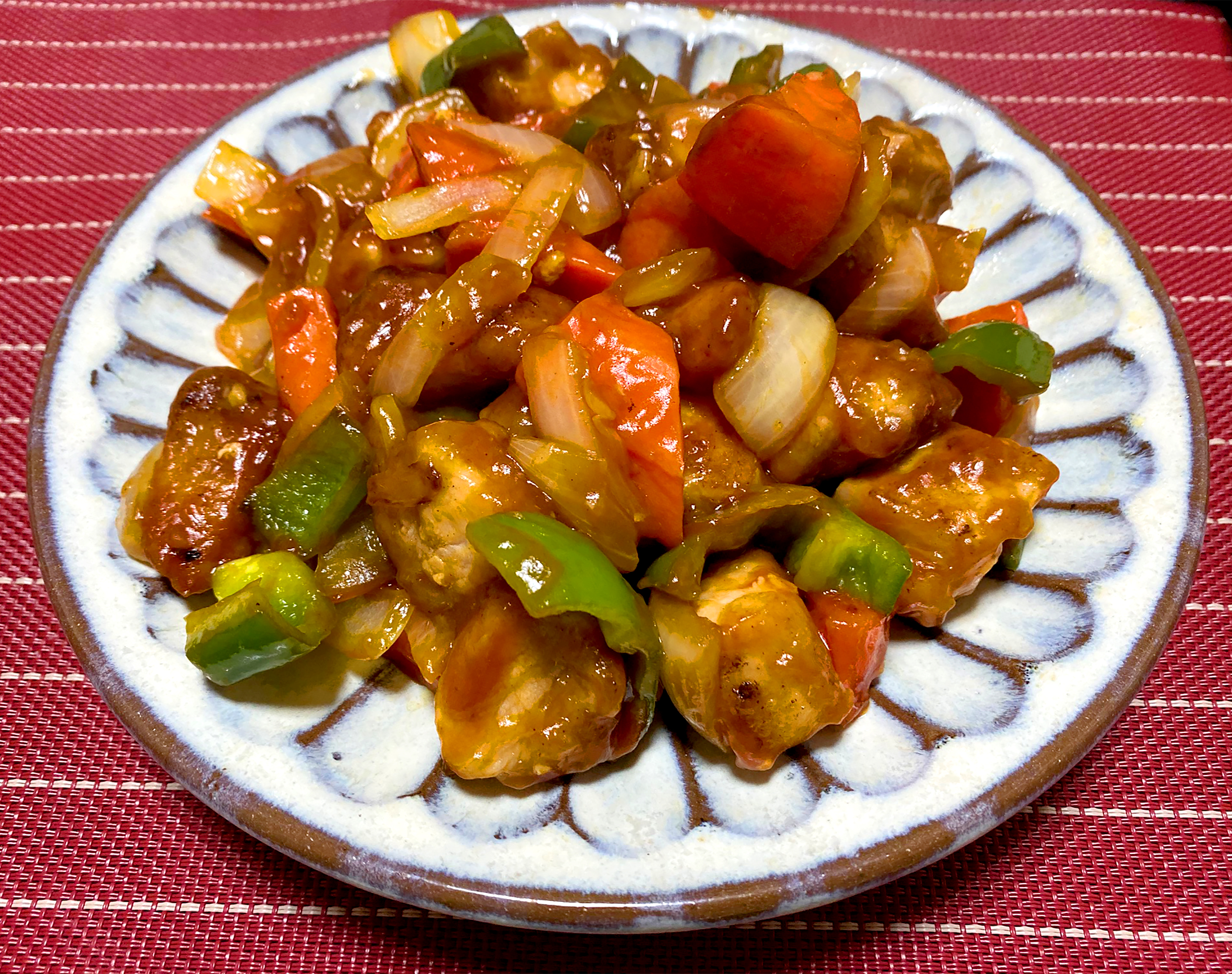 今回は焼き酢豚を作りました!野菜やお肉をラクック で焼いてからタレで絡めました!