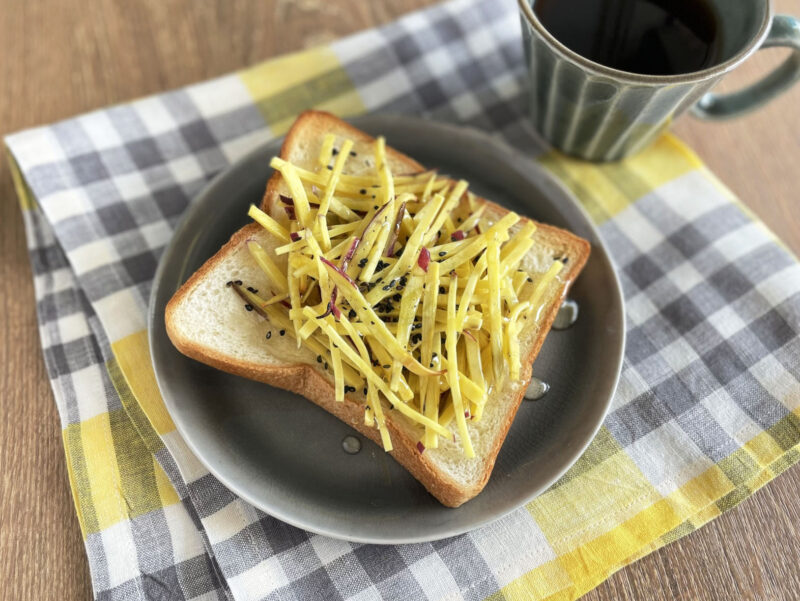 2022.10.03 | ○ | 千切りしたさつまいもをゆでで、はちみつでからめ、食パンにのせて芋けんぴ風トーストに。 |